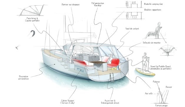 Philippe Briand ging mit einem völlig neuen Schwerpunkt an die Konstruktion des Schiffes: Was braucht eine große Crew, die in Revieren bei heißen Temperaturen unterwegs ist? Ganz klar: Viel Raum an Deck, etwas Privatsphäre unter Deck.