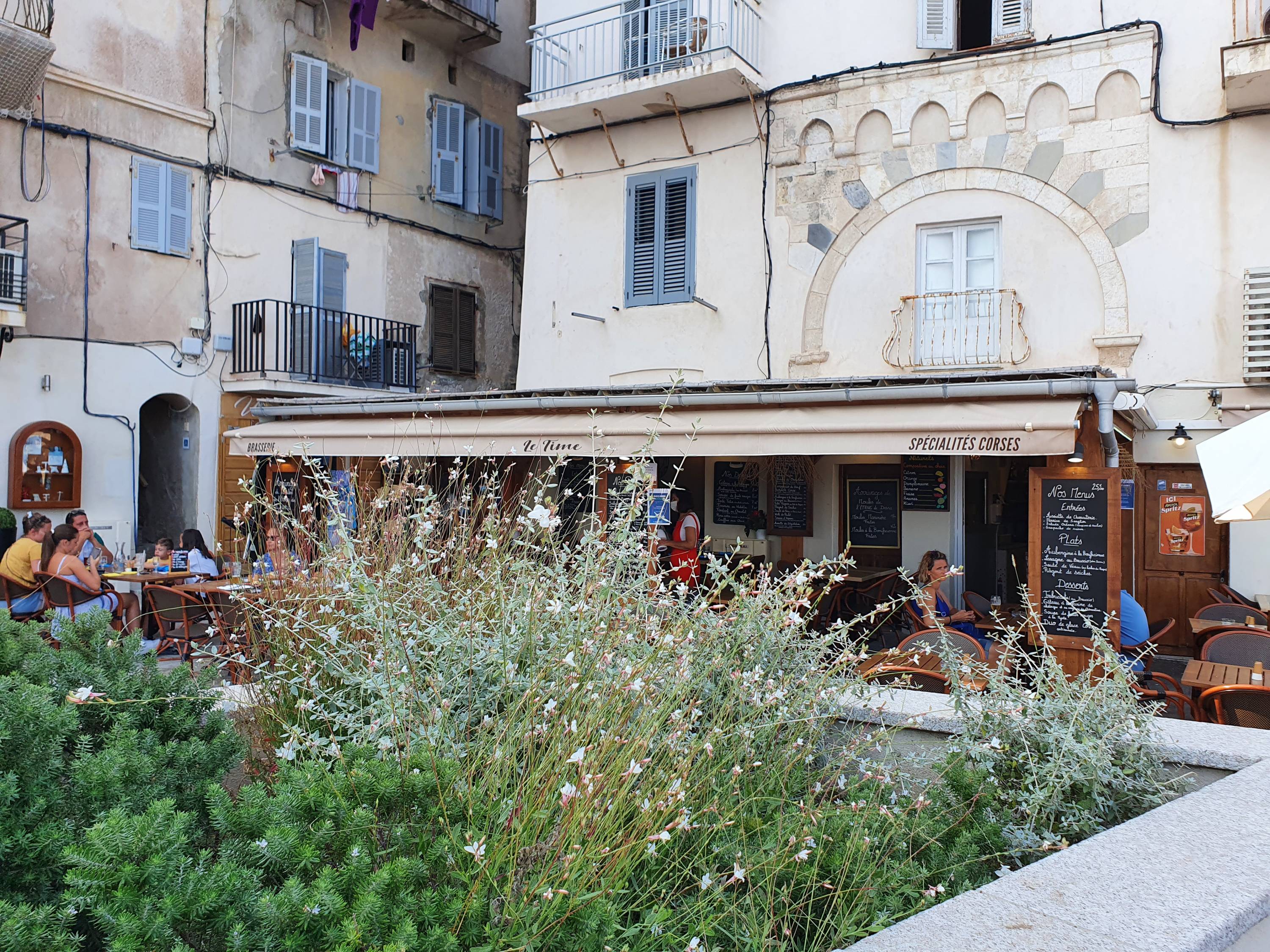 Irgendwann ist genug geschaut und eine Pause gewünscht. Wir schlendern ins Städtchen und lassen uns müde, aber glücklich auf ein paar Barhockern einer Tapas-Bar nieder. Tapas-Bars sind auf Korsika weit verbreitet. Serviert werden hier nicht die typischen spanischen Gerichte, sondern selbstverständlich Korsische. So viel zur Sturheit dieses Völkchens. Was in einer Tapasbar serviert wird, bestimmt immer noch der Wirt! Es sollte mich nicht wundern, wenn sie Schwarzwälder Kirschtorte auf der Dessertkarte hätten, wenn sie meinten, es passe zu ihren Tapas.