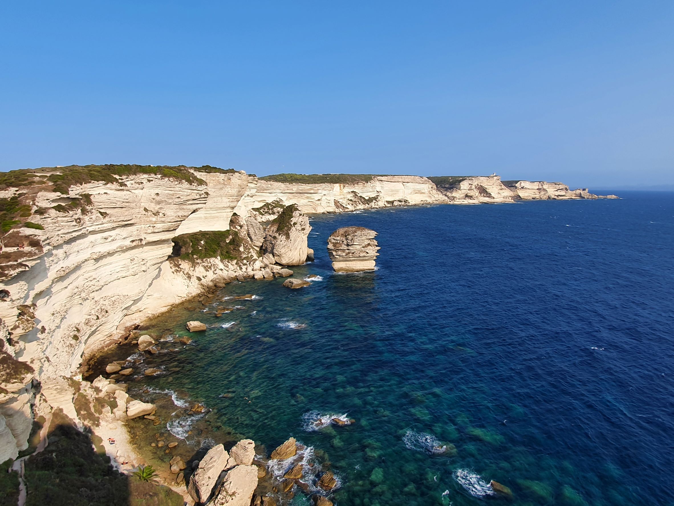 Die Zeit in Bonifacio will genutzt sein und so brechen wir zu einer ausgiebigen Erkundungstour auf. Den Berg hinauf, dann zunächst links weiter bergan gehen und oberhalb der spektakulären Steilküste durch die Dünen entlangwandern. Alle paar Meter muss man stehen bleiben und die atemberaubende Aussicht genießen.