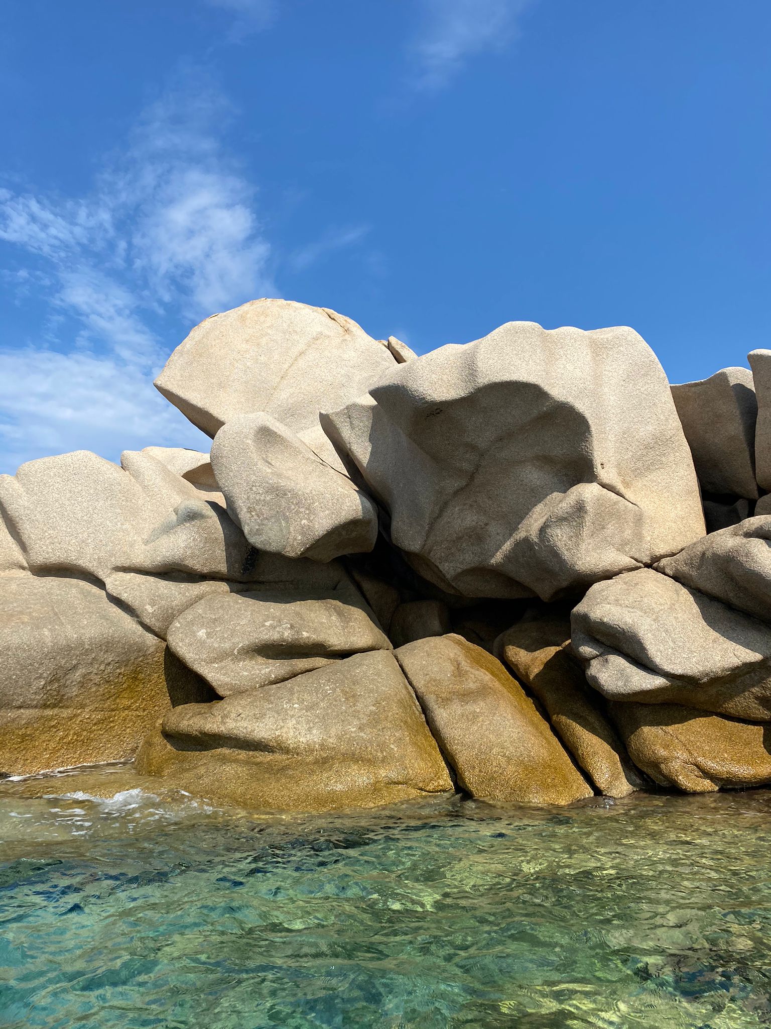 Der nächste Tag tut so, als hätte es das Mistral-Intermezzo am Tag zuvor nicht gegeben. Wind AUS, Wellen AUS, Sommer & Sonne AN. Wie beim Reinfahren gibt es nun beim Rausfahren Gedrängel. Die meisten wollen bei dem ruhigen Wetter in die fulminanten Buchten auf Lavezzi und Cavallo. Die beiden Inseln östlich in der Straße von Bonifacio sind Naturschutzgebiet und einfach nur wunderschön. Sie sind ein Labyrinth aus glattgeschliffenen Felsen und Steinen, scheinbar wahllos ins Meer geworfen. Zwischen den Felsen locken Buchten mit klarsten Wasser und feinsten Sandstränden. Klar, da müssen wir hin. Stellen uns aber schonmal drauf ein, dass wir eine Weile werden suchen müssen, bis wir irgendwann den Anker schmeißen können. Da die Aussicht wieder einmal hervorragend ist, ist die Fahrt an sich aber sehr kurzweilig.