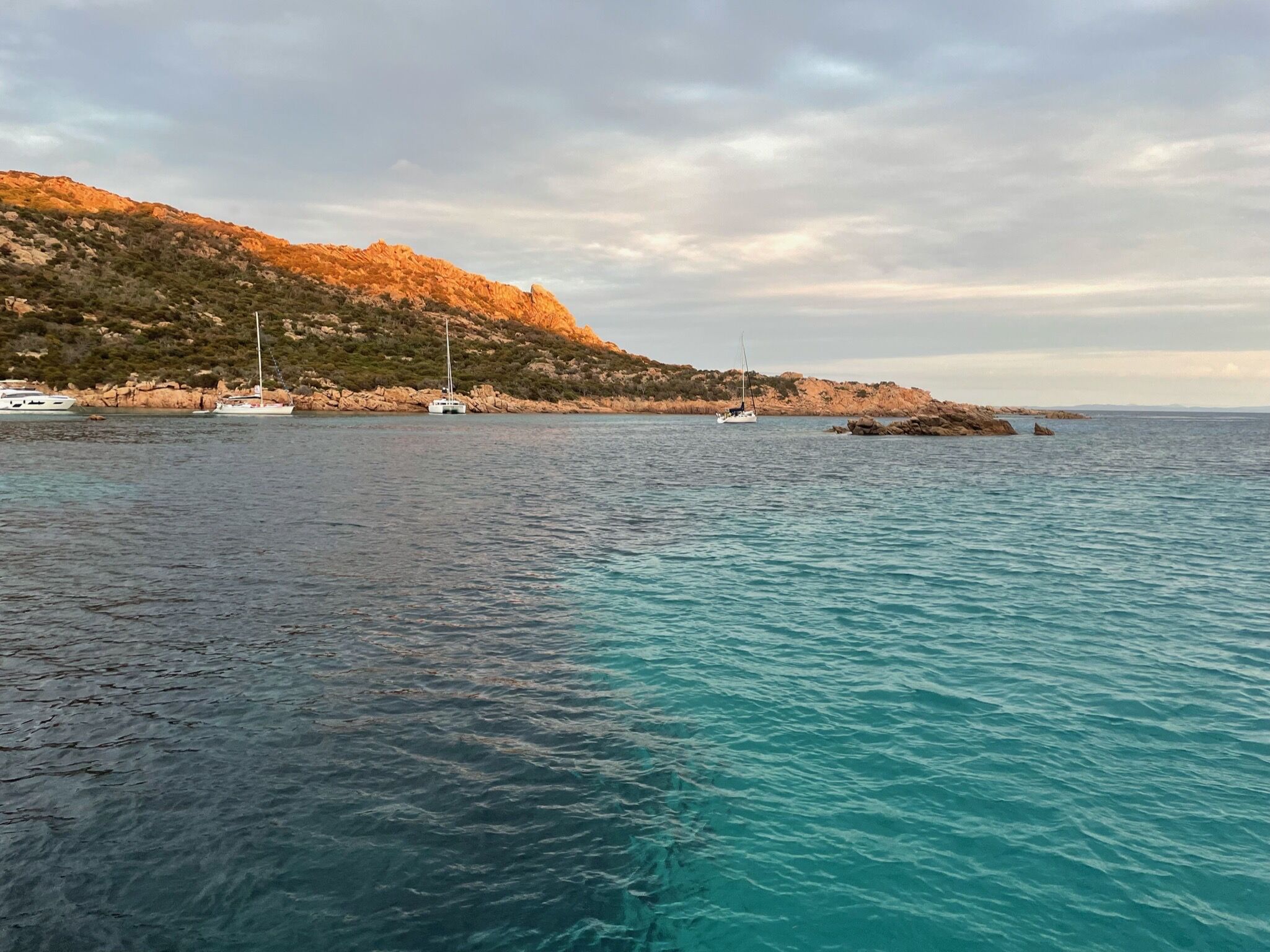 Für unsere Yacht besteht keine Gefahr und so lenken wir unsere Blicke wieder ganz auf die wunderschöne Umgebung und springen ab und zu ins Wasser. Am Abend ist es so schön wie selten. Wir sitzen an Deck und alles ist perfekt. Unsere Spaghetti Alio-olio, der korsischen Rotwein, die betörende Stille, die Aussicht auf Felsen, die sich im Sonnenuntergang blutrot färben. Es ist eine magische Stimmung und ein Moment für die Ewigkeit.