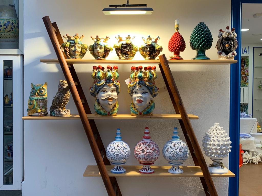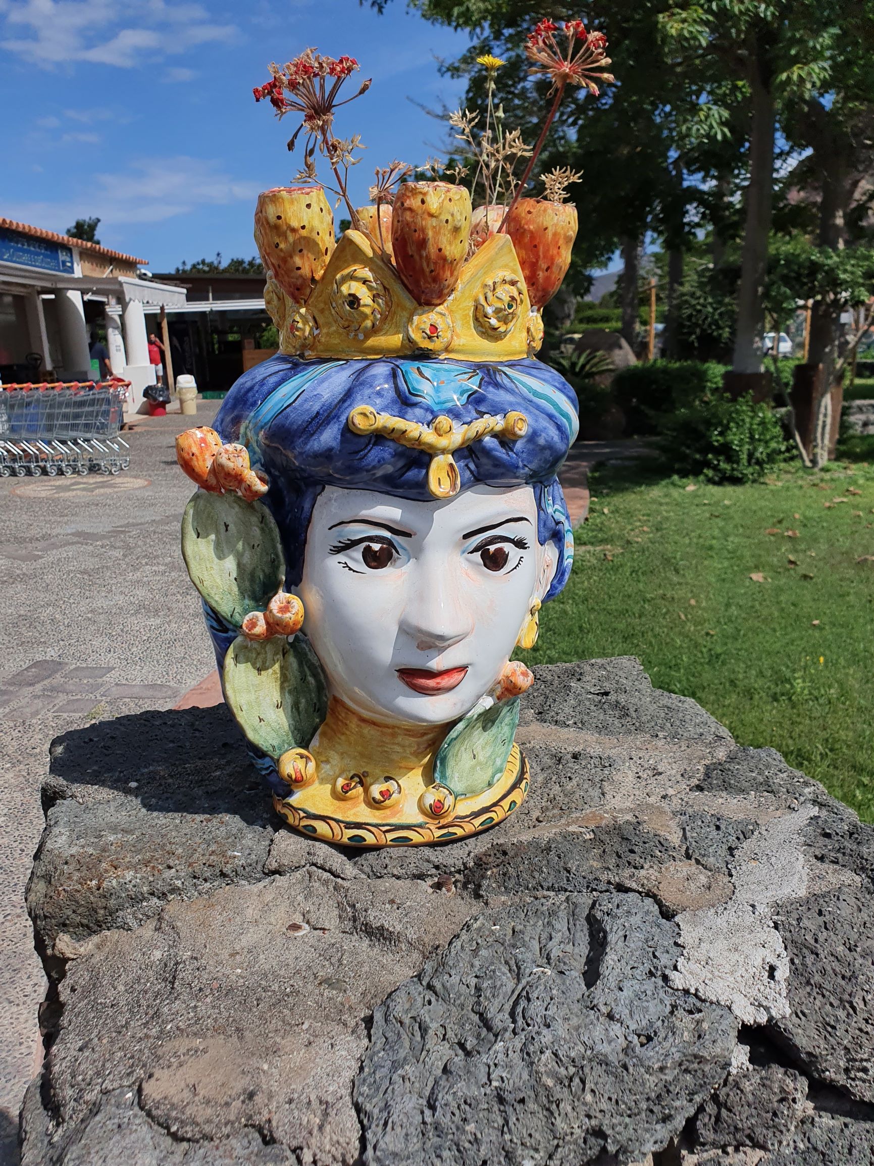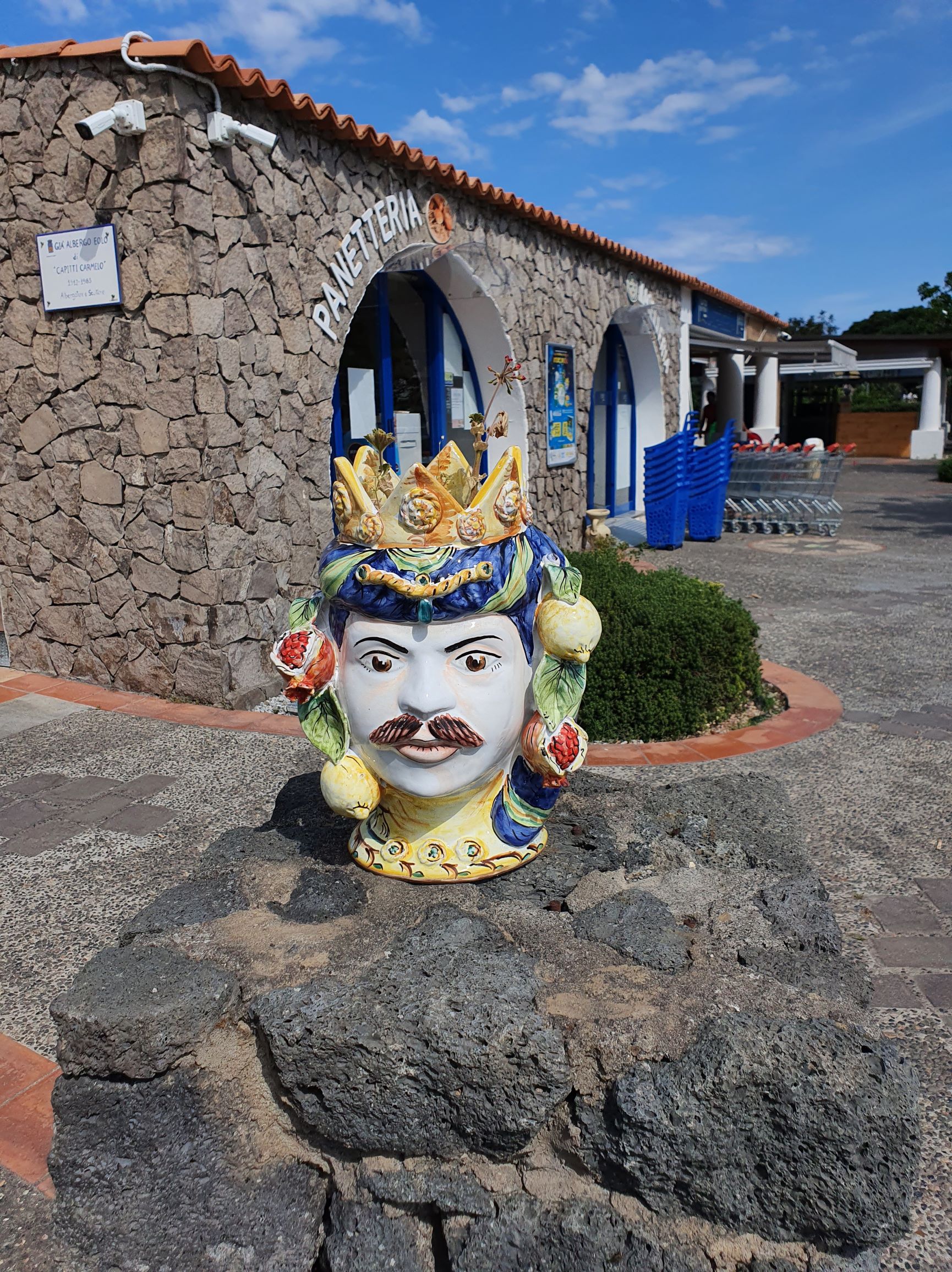 Ganz beseelt schlendern wir durchs Städtchen zurück zum Schiff. Der Ort ist bei Tag noch niedlicher als wir am Abend beim Bummel nach dem Abendessen gedacht hatten. Kleine Läden locken mit bunten Kleidern und touristischem Schnickschnack aus Vulkangestein. An vielen Ecken grüßen die Tesce de Moro - die Maurenköpfe, deren Geschichte wir später auf Lipari erfahren sollen.